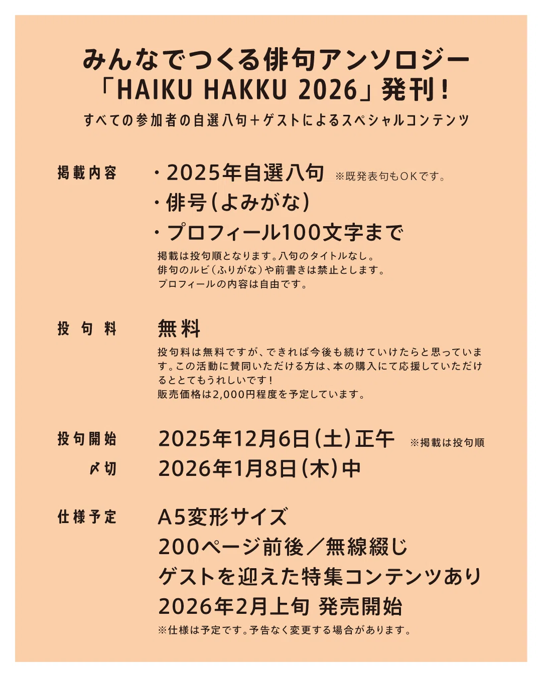 【読者参加型】コンゲツノハイクを読む【2026年2月分】