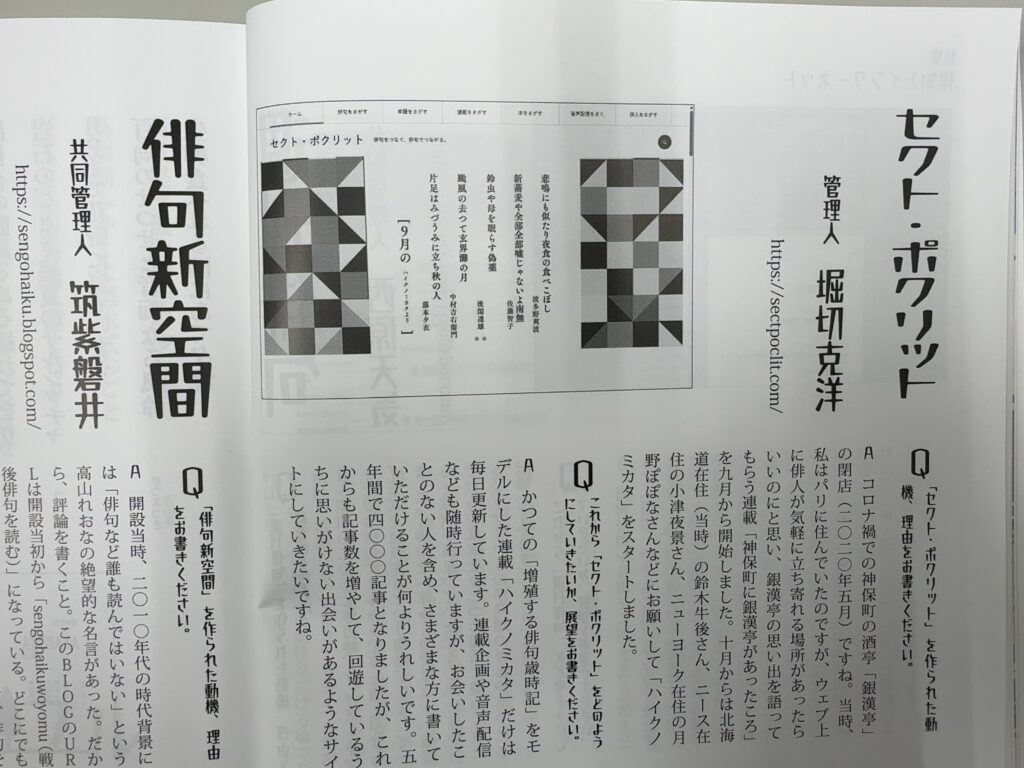 【掲載情報】『俳句四季』11月号(特集:俳句とインターネット) 2025.10.30 お知らせ Post Share Hatena LINE RSS Pin it note 『俳句四季』2025年11月号の特集「俳句とインターネット」に「セクト・ポクリット」が取り上げられてます。 Post Share Hatena LINE RSS Pin it note 投稿者: horikiri お知らせ セクト・ポクリット
