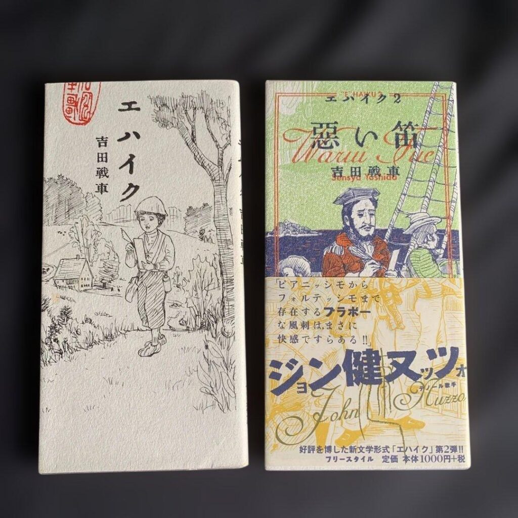 祖父江さんは、1959年愛知県生まれ。多摩美術大学中退後、1990年よりコズフィッシュ代表。人文書、小説、漫画などの書籍の装幀やデザインを幅広く手がけた。吉田戦車のマンガ『伝染るんです。』の装幀を担当していたことから、吉田の『エハイク』シリーズのも担当している。