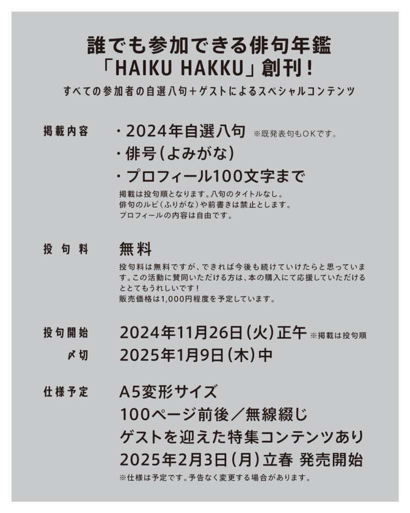 俳句のための文具ブランド〈句具〉より、みんなでつくる俳句年鑑『HAIKU HAKKU』を創刊します!