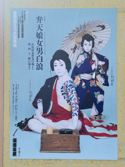 が組み込まれている。なお、この「稲瀬川勢揃いの場」での南郷力丸の衣裳には、其角の句の上五「いなづま」の模様が入っている。