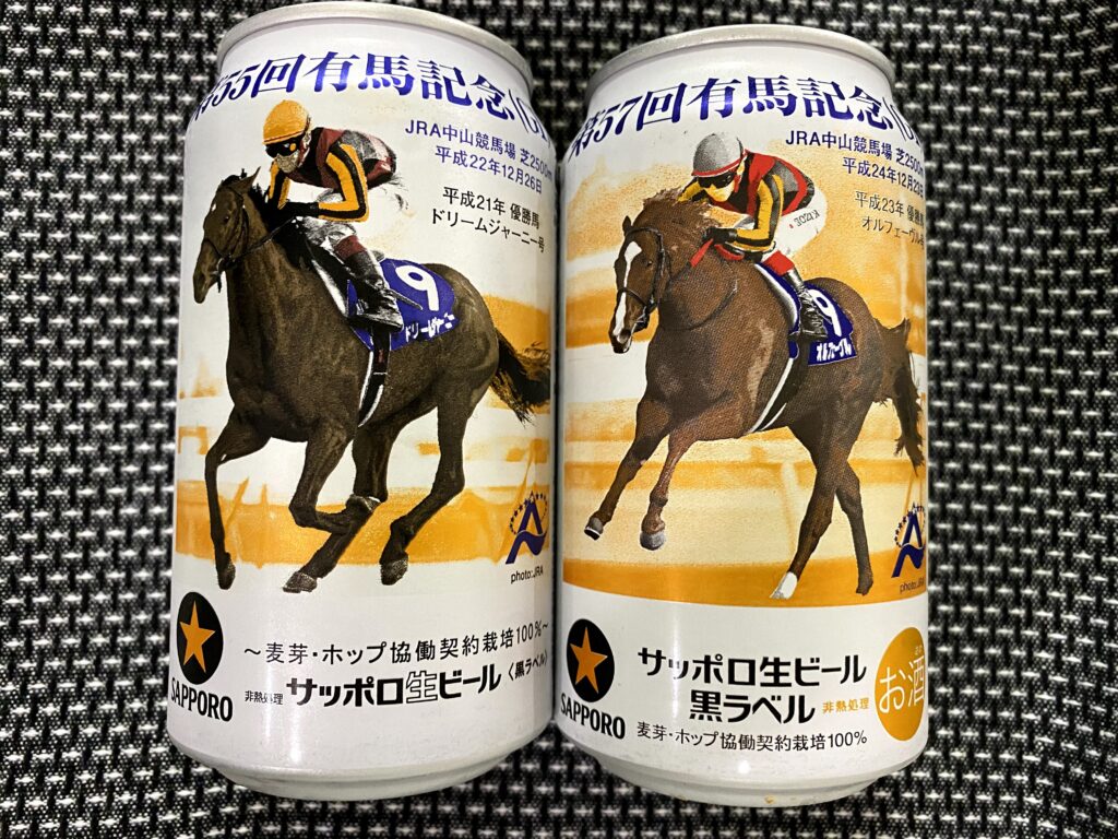 (毎年恒例の有馬記念缶。前年優勝馬がデザインされる)