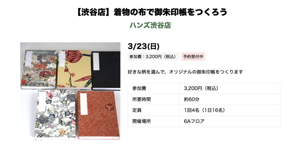 *今月は3/23に東急ハンズ渋谷店でワークショップが開かれますよ。