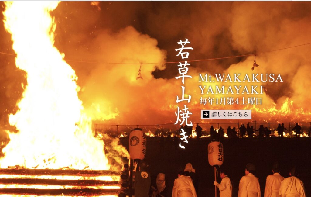 現在は1月に実施されることから、春の季語「山焼」とは区別され、新年の季語とされる。