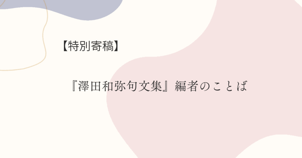 俳人の故澤田和弥氏は、「早稲田俳句研究会」「天為」「若狭」で活躍され、郷里の浜松市では同人誌「のいず」を創刊。俳人協会新鋭評論賞準賞や天為新人賞などを受賞し、将来を期待されていた最中、三十五歳で逝去されました。